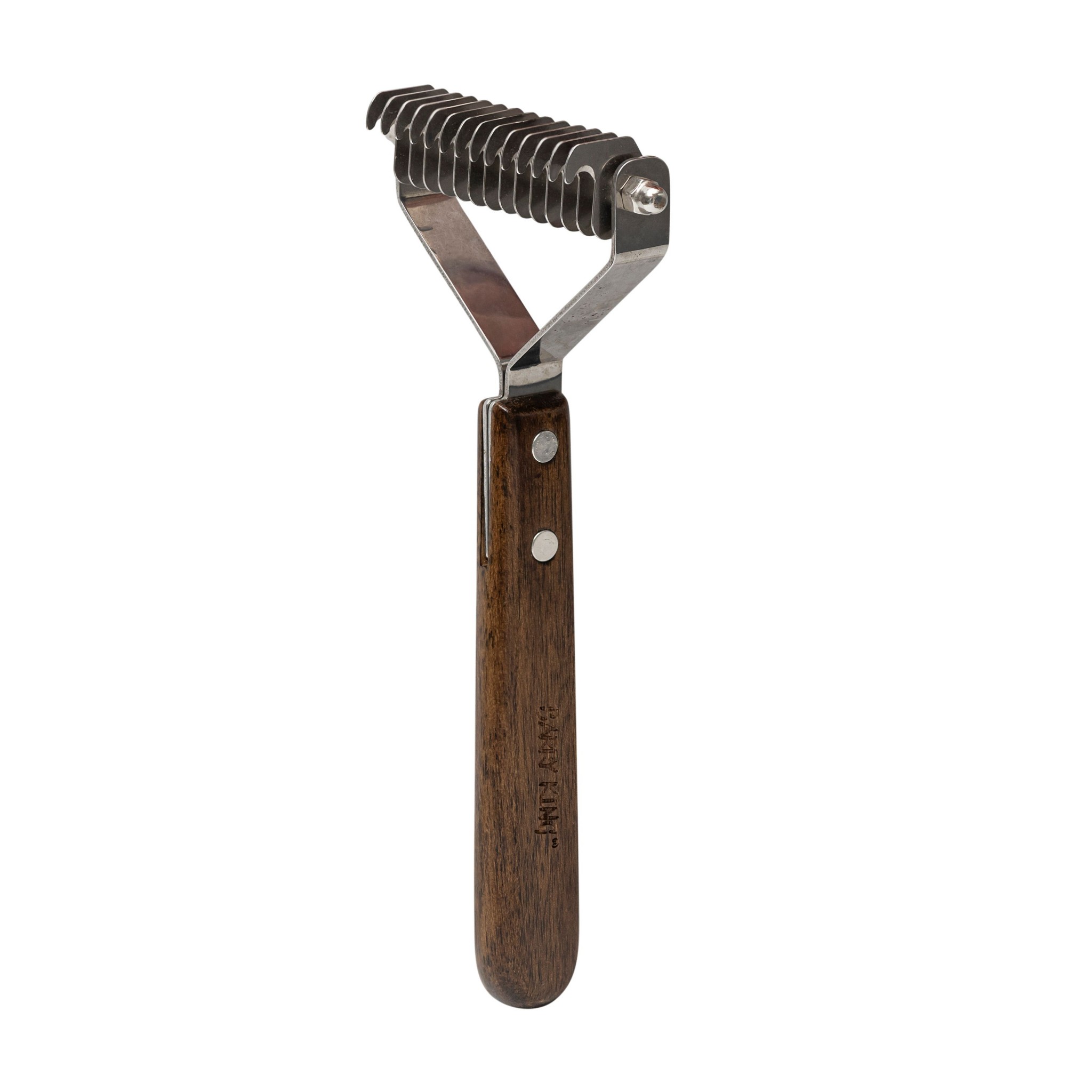 to najwyższej jakości narzędzie zaprojektowane z myślą o kompleksowej pielęgnacji sierści psa. Dzięki starannie dobranym materiałom, takim jak drewno bukowe i stal nierdzewna, trymer jest wyjątkowo trwały i skuteczny w działaniu. Idealny dla psów długowłosych o gęstym, grubym włosie oraz szorstkowłosych, doskonale sprawdzi się zarówno w domowej pielęgnacji, jak i w profesjonalnych salonach groomerskich. Solidne wykonanie i ergonomiczny design gwarantują komfort użytkowania i efektywność w codziennej pielęgnacji.Każde narzędzie Barry King wyróżnia się także dbałością o detale, co widać w eleganckim grawerze logo marki na rączce, podkreślającym jakość i styl produktu.
