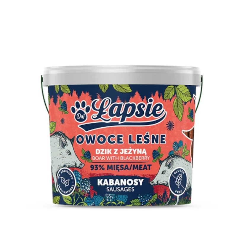 Skład: 93% dzik (mięso, podroby, chrząstki i skóry), 7% jeżyna