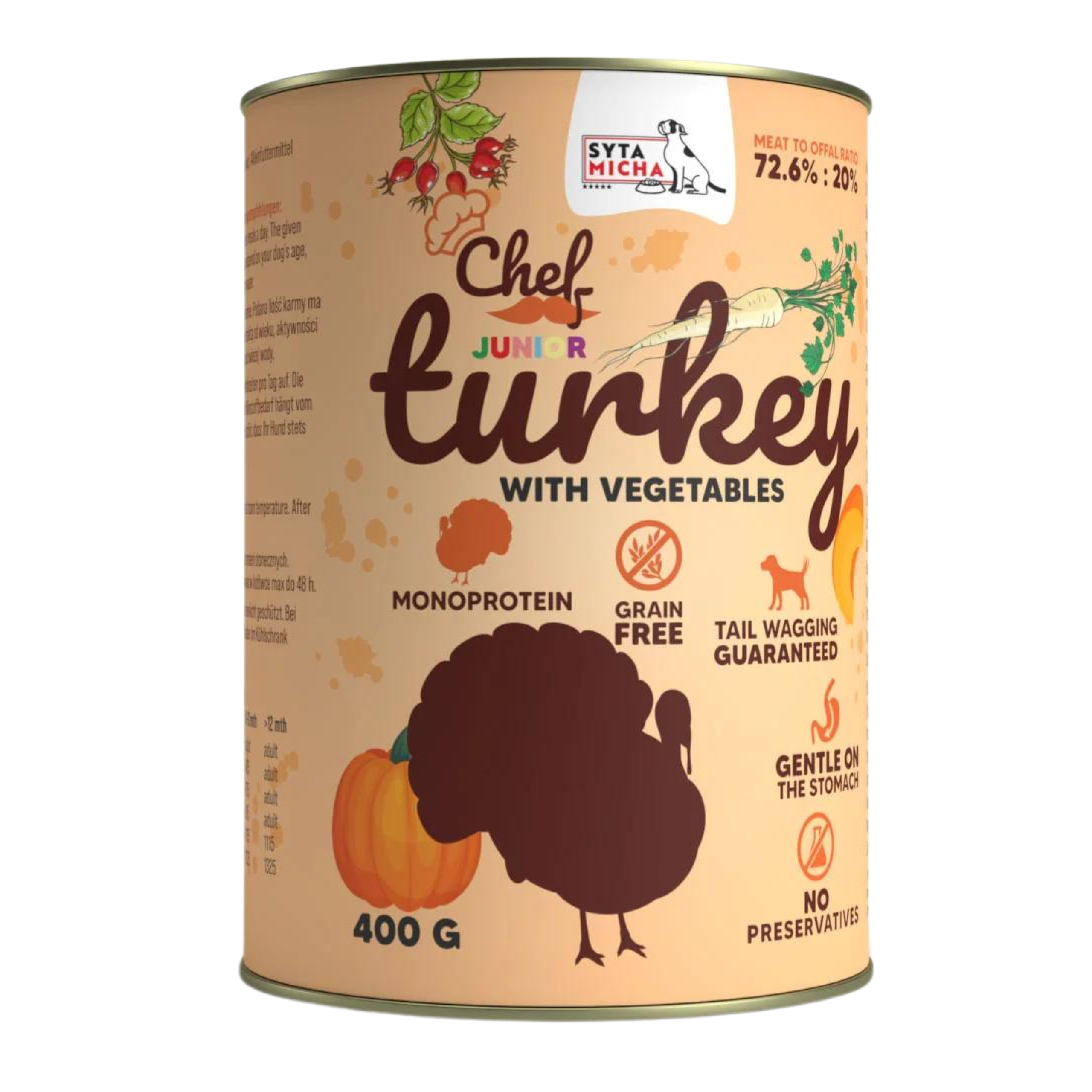 SYTA MICHA Karma Mokra CHEF Junior Indyk z warzywami 400g