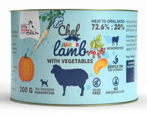 SYTA MICHA Karma Mokra CHEF Junior Jagnięcina z warzywami 200g