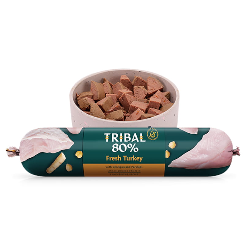 TRIBAL 80% Świeży Indyk, mokra karma dla psa, baton 300g