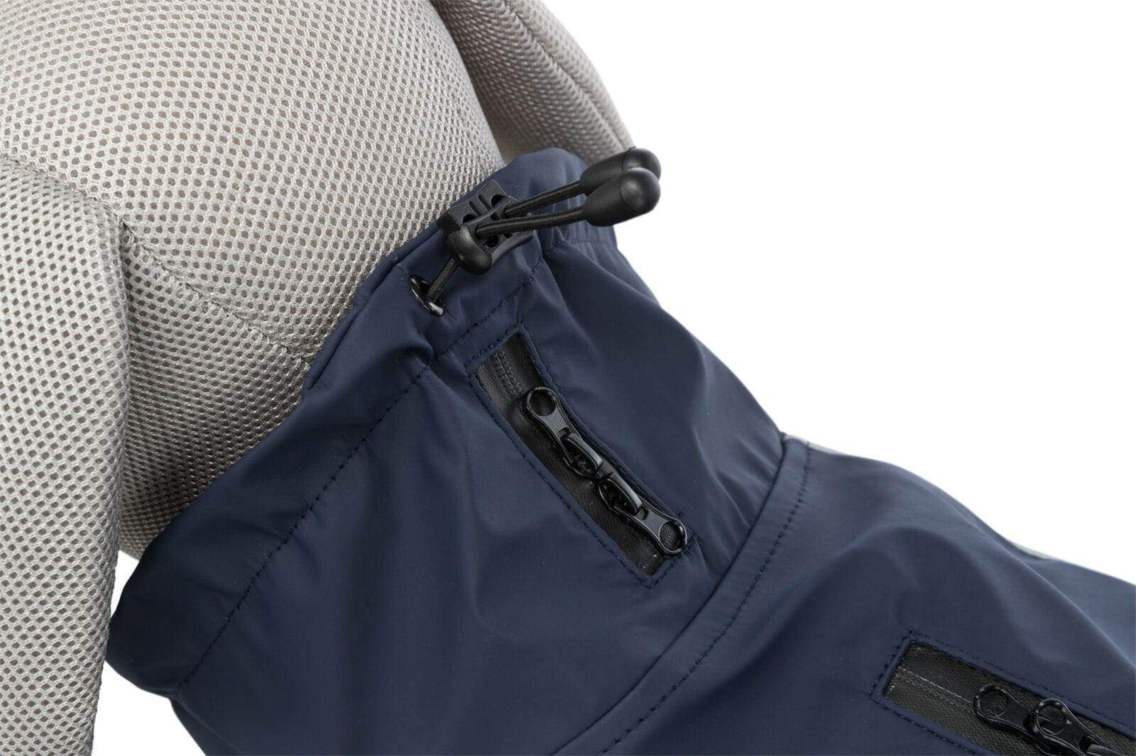 - z dwoma wodoodpornymi suwakami do łączenia z obrożą lub szelkami