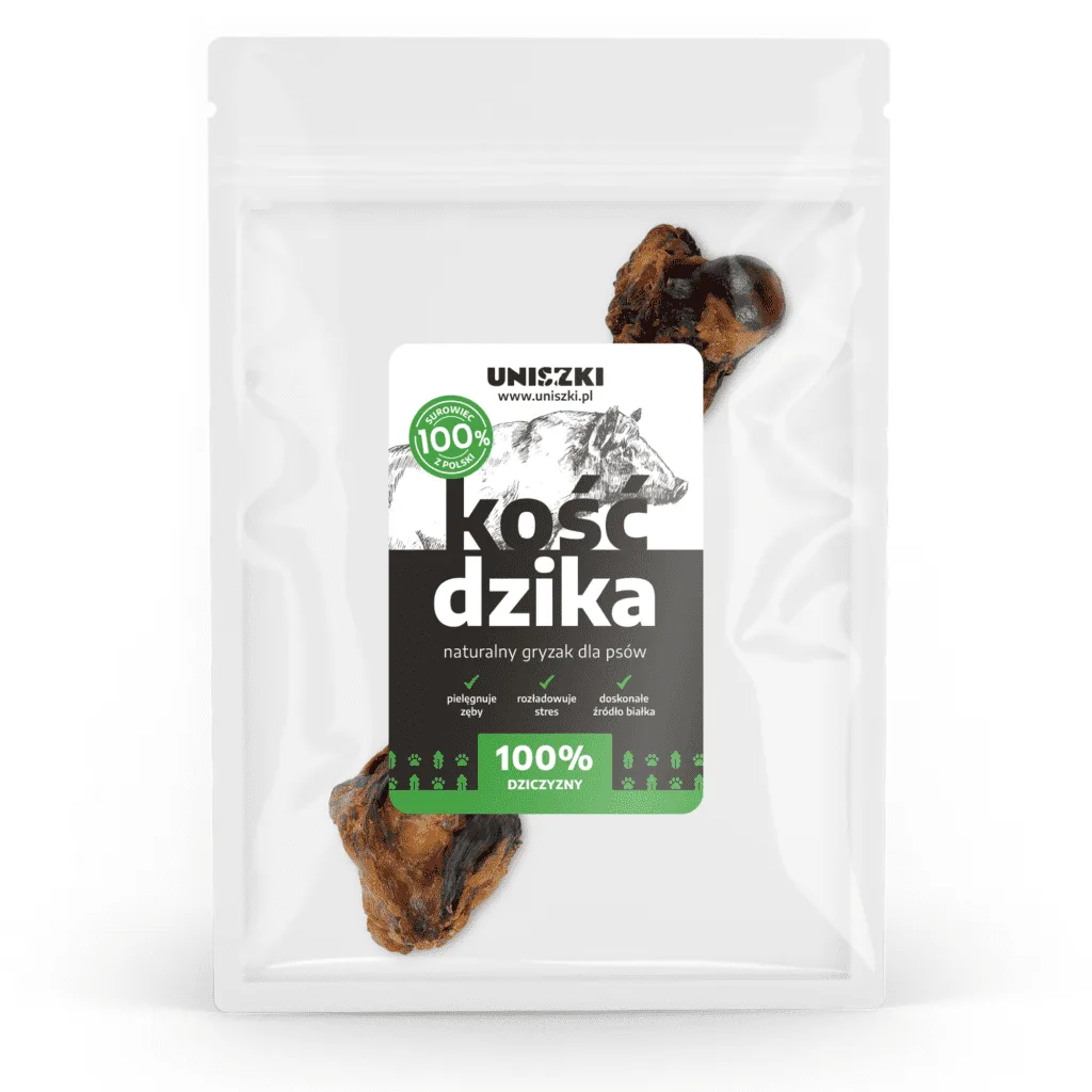 Jeśli nie chcesz, aby Twój pupil cierpiał z powodu bólu zębów, to kość dzika powinna być zawsze w zapasie. Ten gryzak idealnie oczyszcza zęby z nagromadzonego kamienia i bakterii. Dzięki swojej twardości pozwala zająć psa na dłużej, przy tym wzmacniając jego mięśnie żuchwy. Kość dzika stanie się ulubioną zabawką psa, która da mu mnóstwo korzyści zdrowotnych. Zawarte w niej witaminy i minerały wspierają dobrą kondycję i gwarantują lśniącą sierść.
