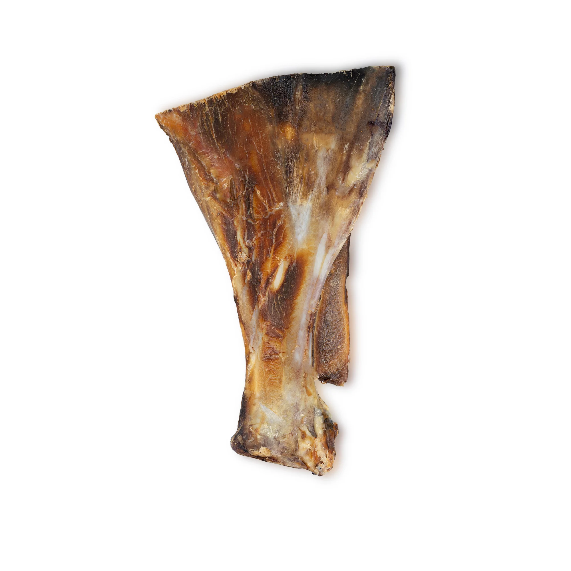 Kość wołowa łopatkowa to wyzwanie dla Twojego psiaka. Jest duża i twarda, przez co musi się trochę natrudzić, aby ją schrupać. Dzięki temu zaspokaja swoją potrzebę żucia i gryzienia. Jej nieregularny kształt pozwala szybko usunąć kamień z zębów. Kość wołowa będzie świetna dla łapczywych psiaków — jej rozmiar nie pozwala na szybkie połknięcie, a co za tym idzie, minimalizuje ryzyko zadławienia się