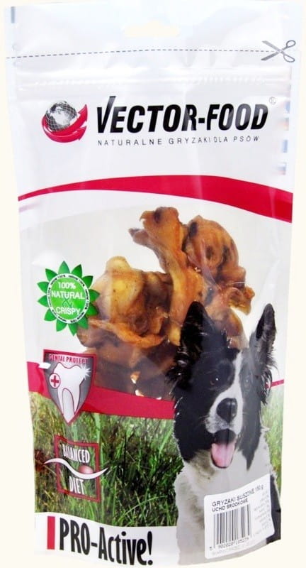 Naturalny produkt pochodzenia zwierzęcego z ucha wieprzowego środkowego, poddany specjalnemu procesowi suszenia. Nie zawiera konserwantów. Czyści zęby i zapobiega osadzaniu się kamienia nazębnego. Chrupiący i aromatyczny, prawdziwy smakołyk dla psa.
